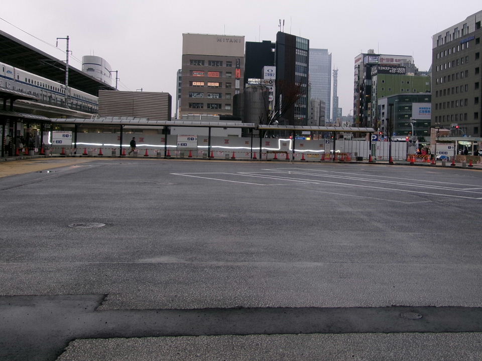 | 2020年02月02日。西、名古屋駅から。手前の車線が無くな ってロータリーのある所まで駅前広場が広がるようだ。 |