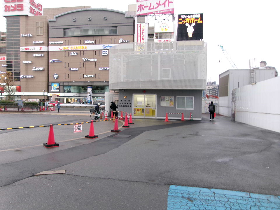 | 2025年09月21日。新しい交番建設中。 | 2025年09月21日。切符売り場と交番の狭い間を 抜けて沢山の人が行き来をしているが両方とも なくなるとあとは地下街の出入口が残るだけで 広く空く。 |