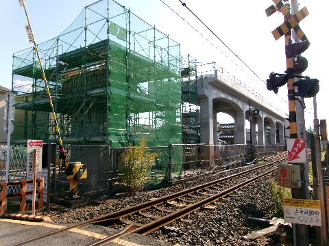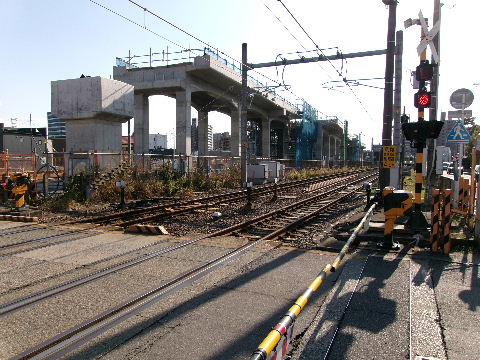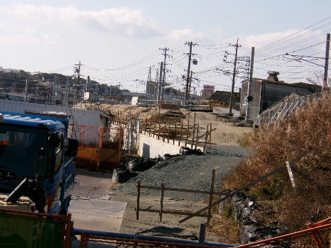 | 2026年01月04日。踏切南でも橋脚工事始まっている。 | |