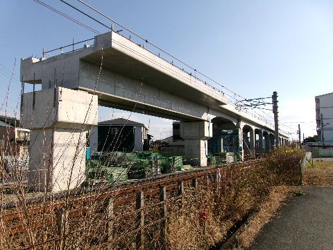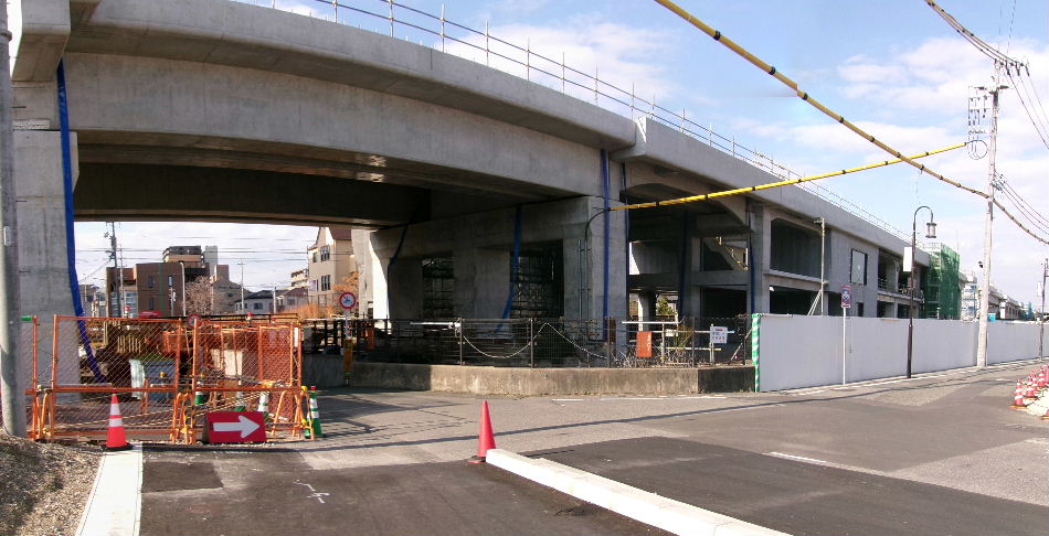 | 2026年01月04日。踏切部の架道橋架かる。元の踏切 位置より少し南へ移動している。 |