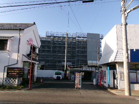 | 2023年11月05日。駅方向。重機で見えなくなる。 | 2024年01月14日。竹村方向。重機が入って基礎工事。 |