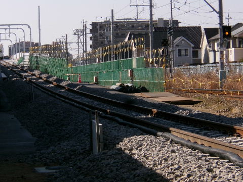 | 2021年02月07日。新しい駐輪場が出来たので線路寄りの半分撤去し仮線用地確保。 |