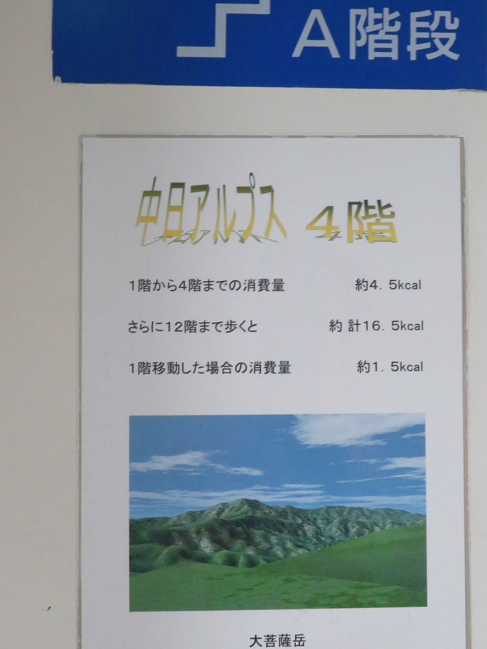 2019年03月30日。中日アルプス。 ビル内で働いている人とか階段を使って運動しろということのようだ。 |