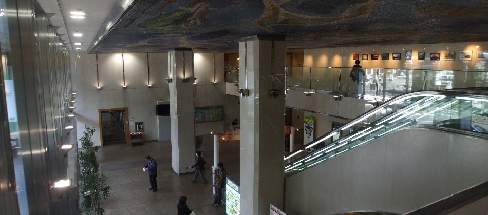 2018年03月03日。2階から正面ロビー。天井には有名なモザイク画。 |