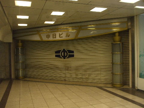 2019年04月21日。地下入口は中日マークのシャッタ |