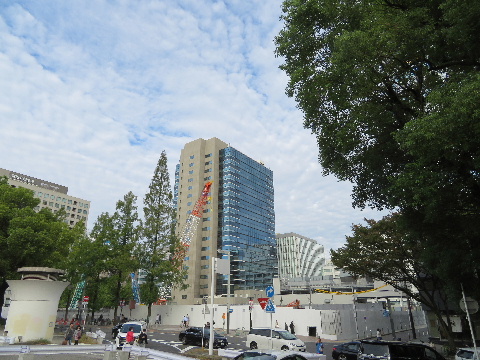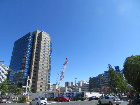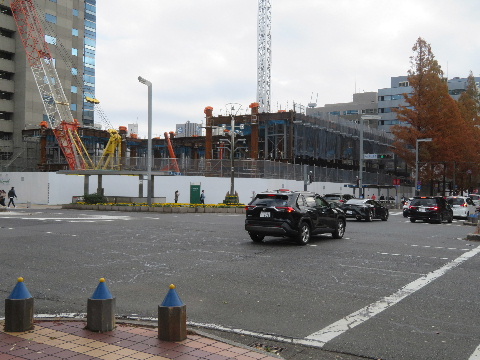 2022年10月02日。駅前ミッドから見る。すぐ手前左には栄角地のビルが立ち上がってくることになる。 |