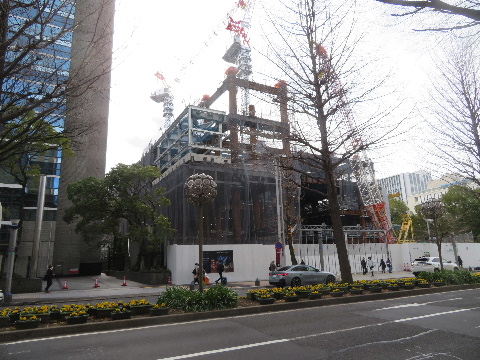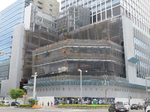 2019年04月21日。南側に工事塀立つ。暫くはビル内 |