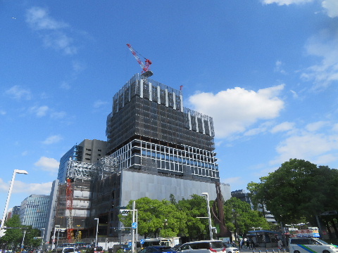 2022年09月17日。北西角低層部の鉄骨組み進む。 |