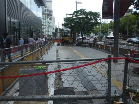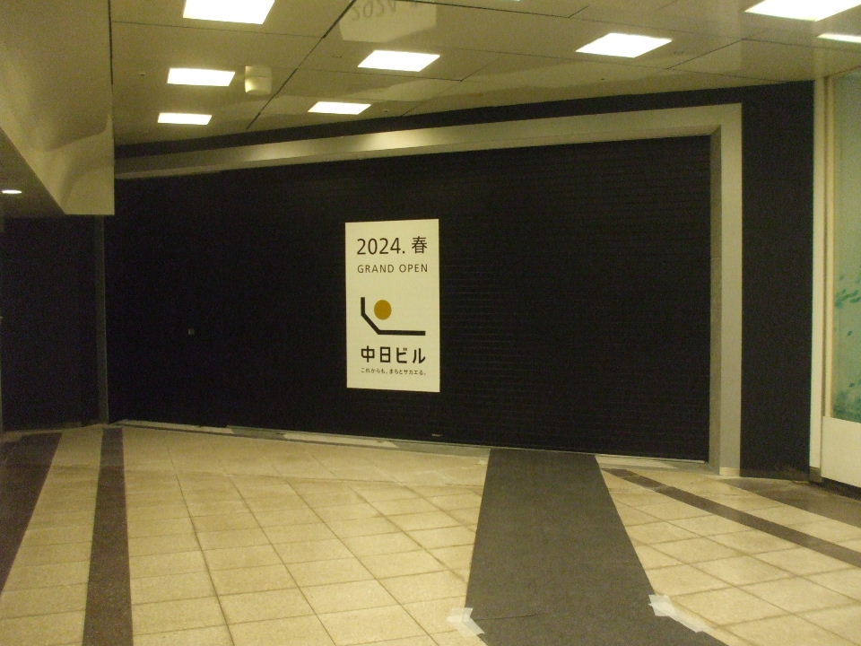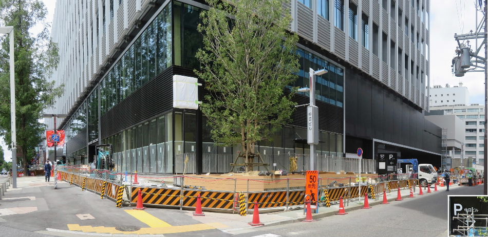 2019年08月04日。広小路、久屋大通側、工事塀で |