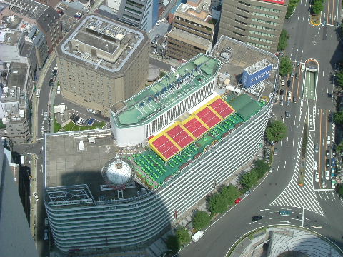 | 2004年2月7日。屋上に球体広告塔があった頃。昔はキャラメルだ ったがこの頃はコーラ。 |