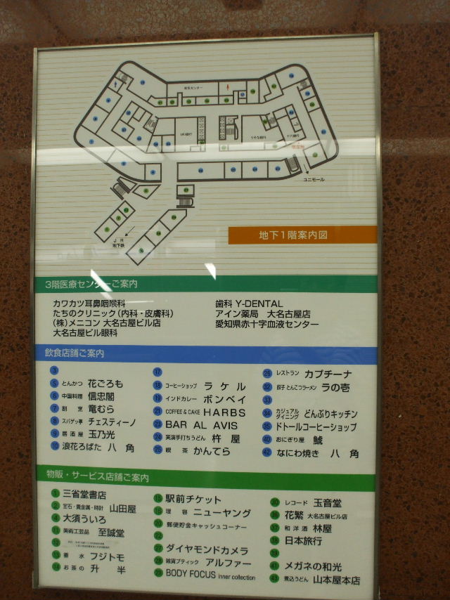 | 2010年5月15日。ビル最後 期の地下飲食店街案内板。 画像クリックで拡大できます。 |