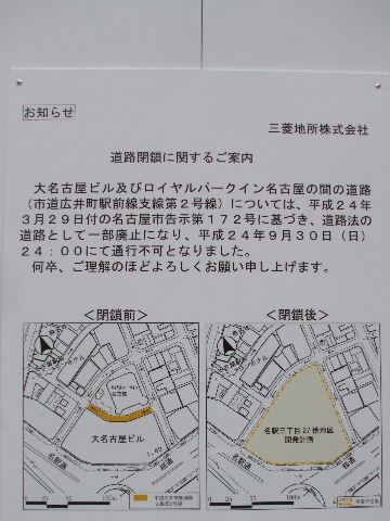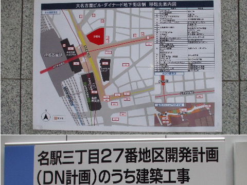 | 2012年10月14日。工事名とテナント移転先案内。 駅前に散らばっている。 |