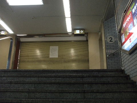 2012年10月4日。地下鉄駅からのはいり口の地下道も閉鎖。 |