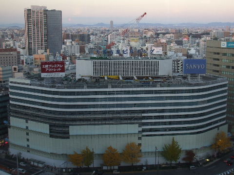 | 2012年11月18日。東側。ホテルは上まで足 場が組まれている。 |