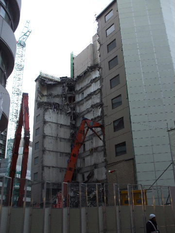 2013年3月3日。覗き窓がまた一個減った。9階が半分無くなっ ている状態なので高さは元の2/3く らいになっていることになる。 |