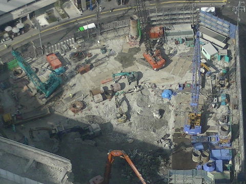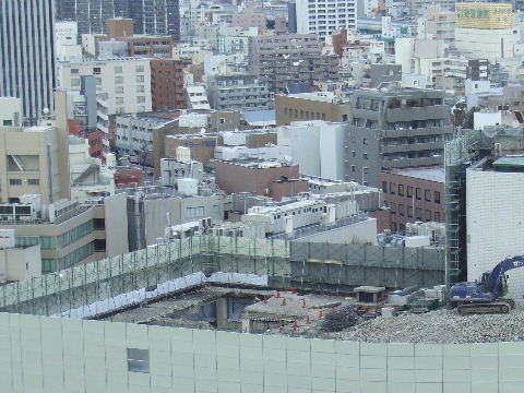 | 2013年3月16日。また一段低くなって7階まで下がってきた。 | 2013年3月23日。6階。高さ半分になって裏の敷地の地面が見えるようになった。 |