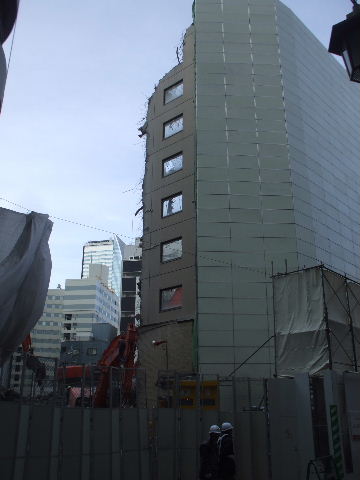 | 2013年2月3日。ホテルは奥の方が大分と 無くなってきて通り沿いの皮だけになってきた。 |