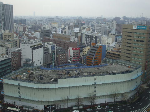 2013年2月24日。裏のホテルほぼなくなり少し低くなった大名古 屋ビルの裏が見えるようになって きた。 |
