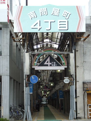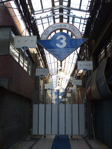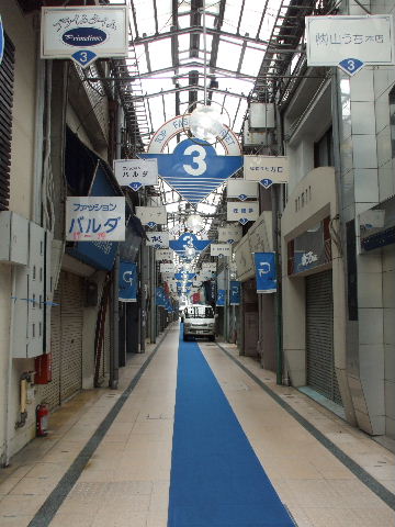 | こちらからだとあまり変化が見えない。 | まだアーケードの残っている通りを塀の