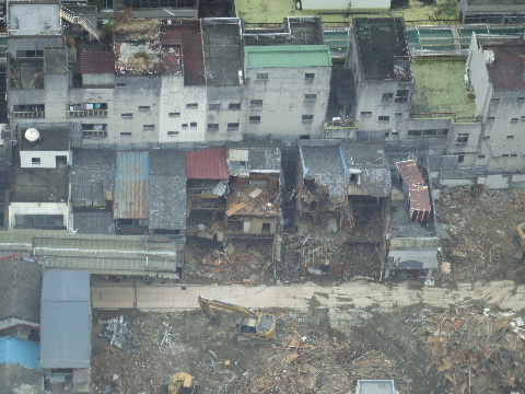 北東部分で建物の撤去が進んでいるのが見える。 |