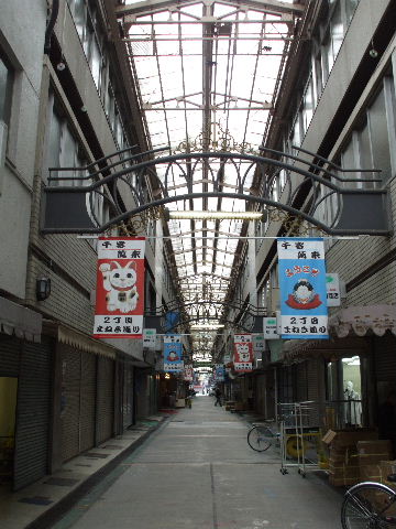 東側の商業施設部分。既に繊維問屋の看板 が出ている所もある。 |