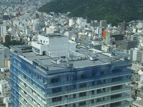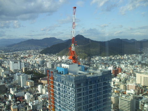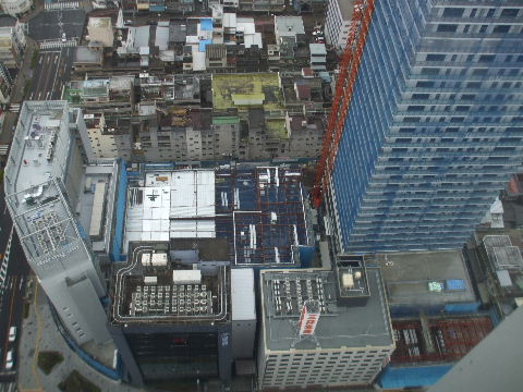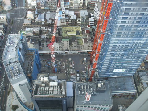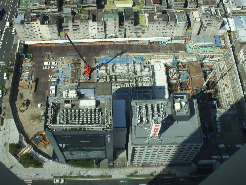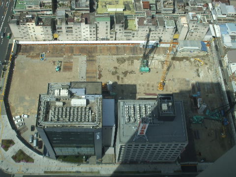 | 超高層棟は5階組み立て中。 | 柳ヶ瀬方向を見る。下にチラとクレーンが視界に入るように なった。やがて目の前にビルが立ちはだかり この景色の半 分くらいが見えなくなるものと思われる。 |