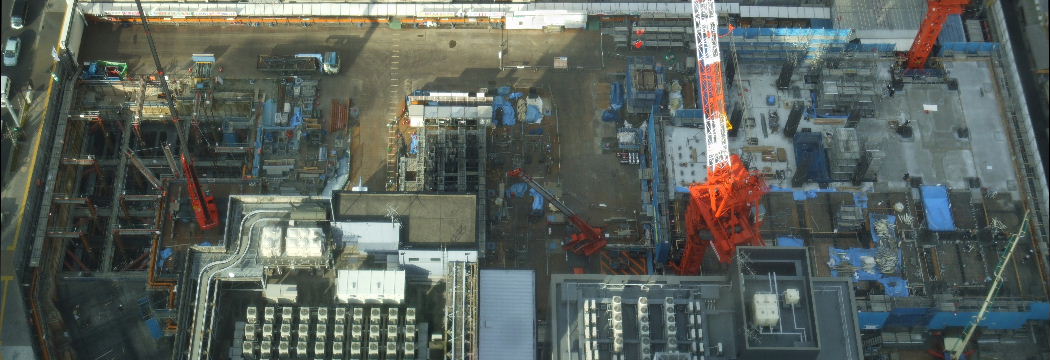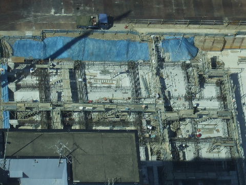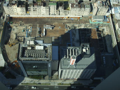 | 超高層棟は3階の鉄筋鉄骨組み中。低層棟は1階鉄骨まで。 シティ43の影が日時計のよう。 |