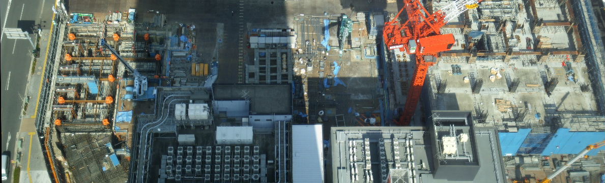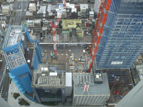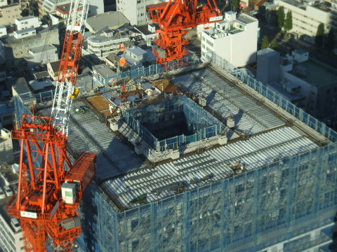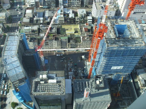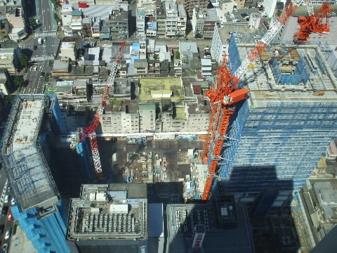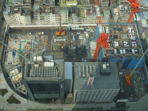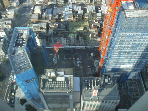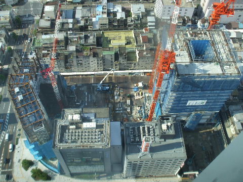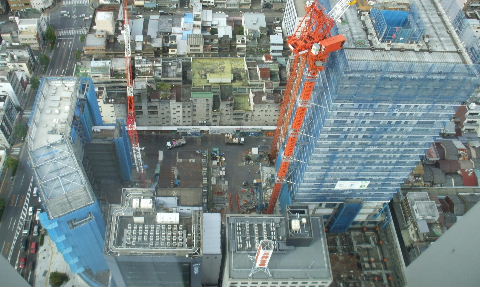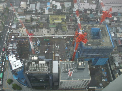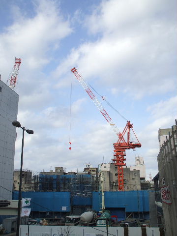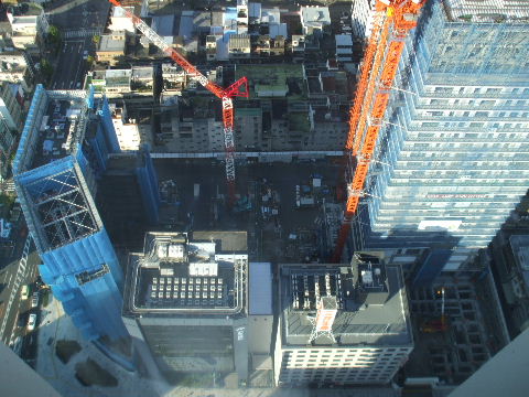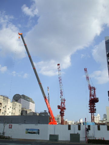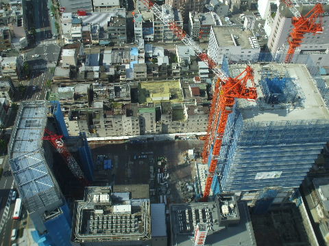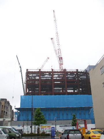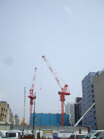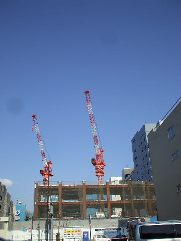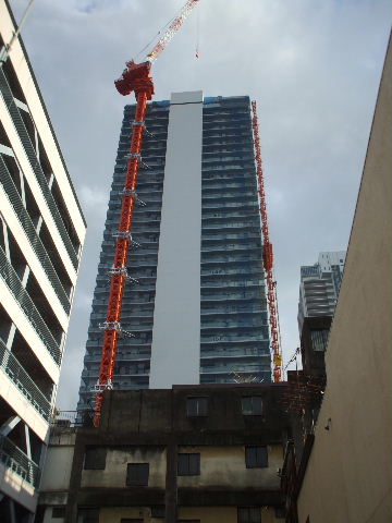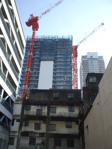 | この位置から全体を写すのはもう無理。 | 周囲のビルよりも高くなってきた。 | さらに突き抜けてきた。手前には昔ここ