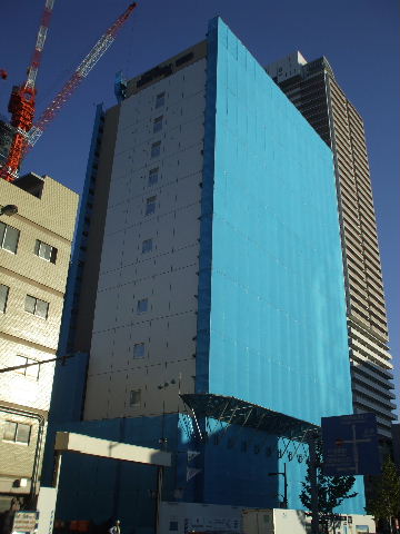 | 最上部にはホテル名。 | さらに高くなる。 | 超高層棟前に低層部の商業施設フロア を継ぎ足して建設 中。 |