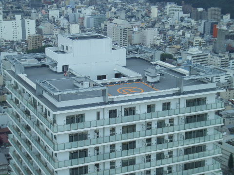 | 超高層棟全身を見る。 | 屋上にはRマーク。 |