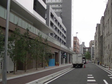 | 駅前から向うまで見通せるようになった。 | 一本北の問屋街。左側の建物のすぐ後