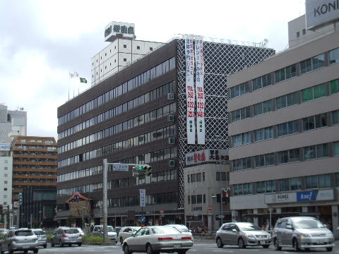 | 2011年9月17日。北東、広小路伏見交差点から。北面と、南面の 一部にはなまこ壁風の外壁が貼り付けてある。 |