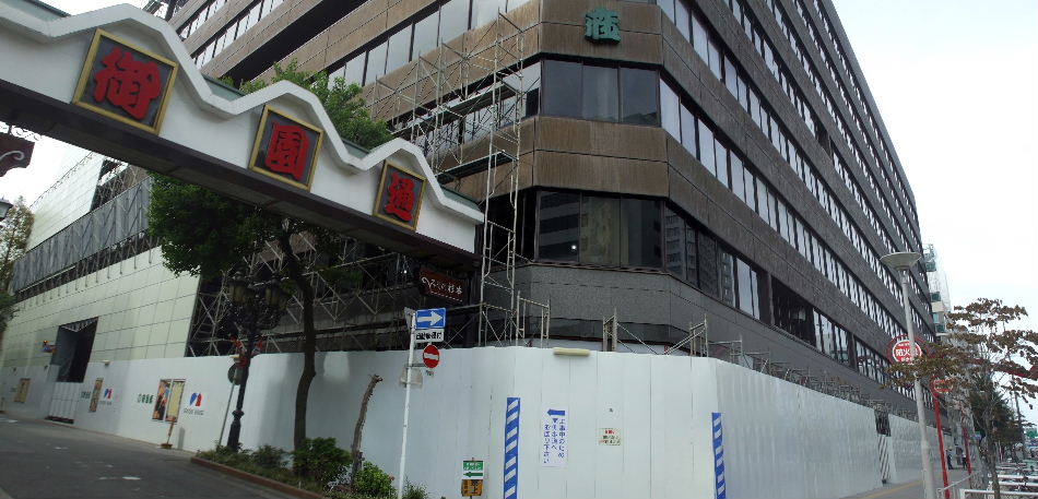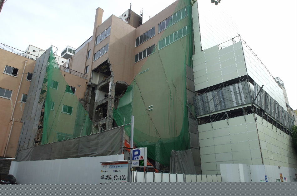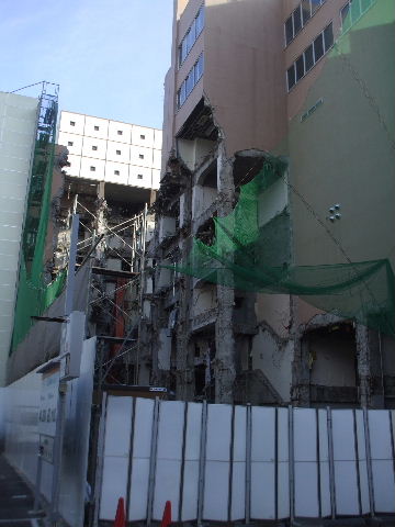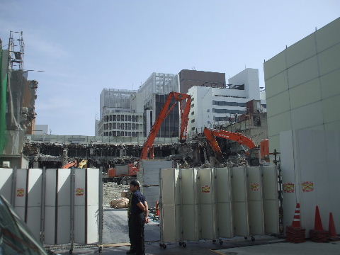 2014年12月23日。表側はまだシートに覆わ れたままだが裏は劇場の客席があった辺り は粗方無くなった。 |