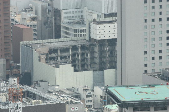 | 2014年12月28日。ミッド展望台から。劇場部分は表側に近い部分だけ が残っている。 |