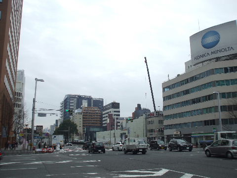 2013年2月7日。少し南にある歩道橋から。 この辺から見れば新しいビルも全体が入り そうだ。 |