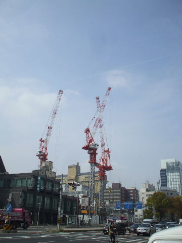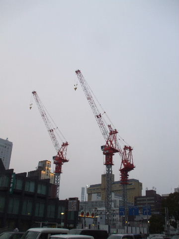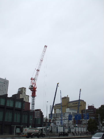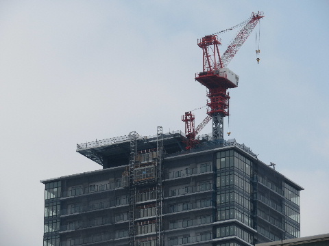 | 2016年11月18日。手前のビルの塔屋の高さ に近づいてきた。クレーンを高くしようという ところ。 |