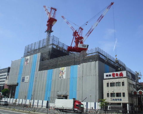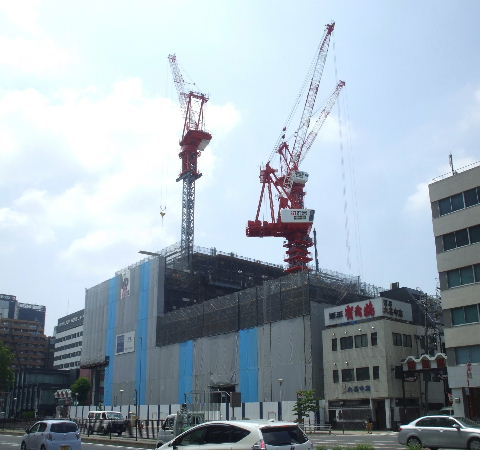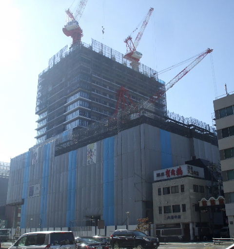 2015年03月07日。広小路伏見交差点から。塀もあと2~3階くらい の高さ。 |