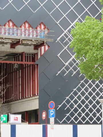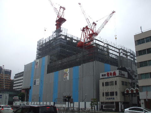 | 2016年06月25日。南東方向から。 | 2016年07月10日。奥は5階にかかる。これで劇場分の高さには なったか。 |