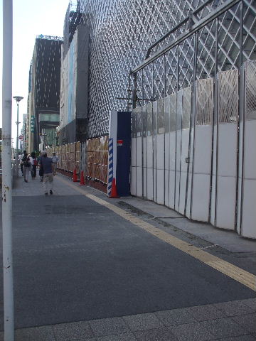 | 2017年09月02日。正面の工事塀が虎に替 わって正面前の歩道整備に掛かっている。 |