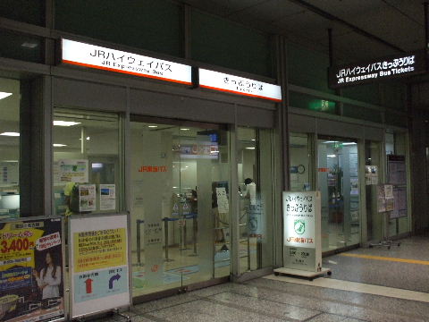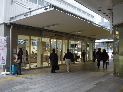 | 西口JRバス乗場は乗降時に雨で濡れないように二段重ねの屋根。 | 切符売り場