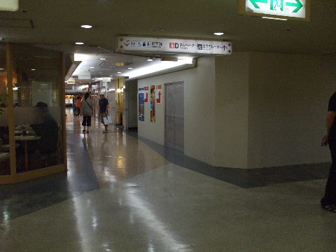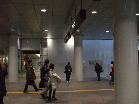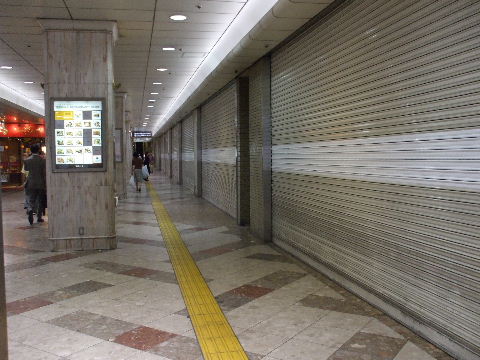 | ホテルと百貨店の間のバスターミナルへ抜ける通路も閉鎖。左に見える通路はタワーズ駐車場への出