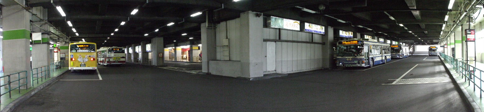 | 2010年8月7日。2階は市バス乗り場でこちらは鉤型になっている。右奥のスロープで1階から上がって