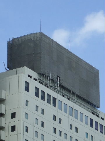 | タワーズとの隙間で何やら解体に関係するらしき作業が始まっている様子。 |
