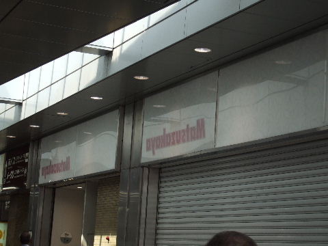 | 朝方には駅側の正面入口の表示もアクリル板が裏返されていた。 | それがその