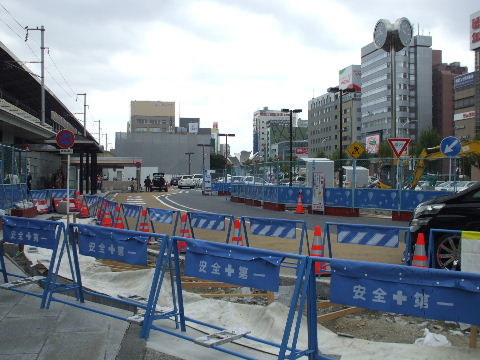 | 車道拡幅が終わっている。 | JRバス乗場工事中。 |