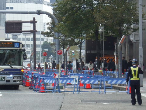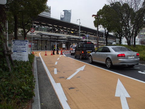| 一般車が全く入れなくなっている。 | ガードマンとコーンが立ってバスが来な
