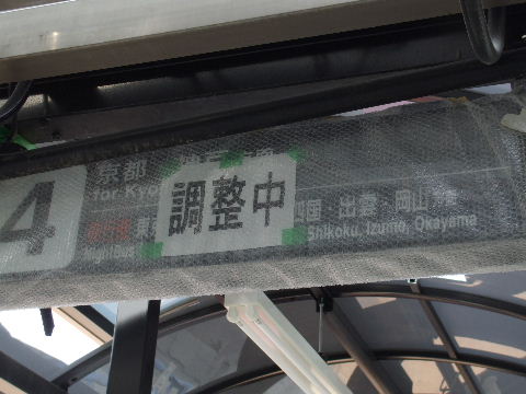 | 市バスは23日から。 | 9日から使用開始したJRバス乗場の案内板。 |