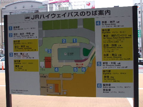| 大分と出来てきた。乗場は6つあり手前の6から順に、90°折れて売り場の前が3、もう一度折れて
