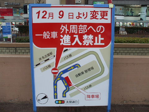 | 名駅通に面した側に掲出されていた「市JRバスのりば」の文字が…。 | JRが抜