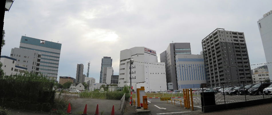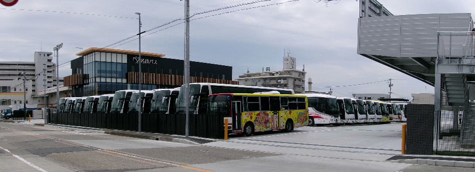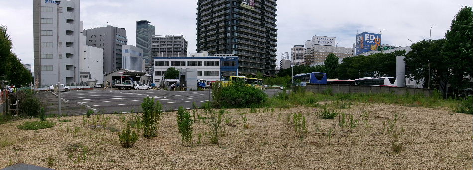 2019年08月25日。今は北寄りに駐車場、あとは空地になっている。南隣は名鉄バスの車庫でバスセンター に出入りする各社長距離バスの昼寝場所になっている。 |